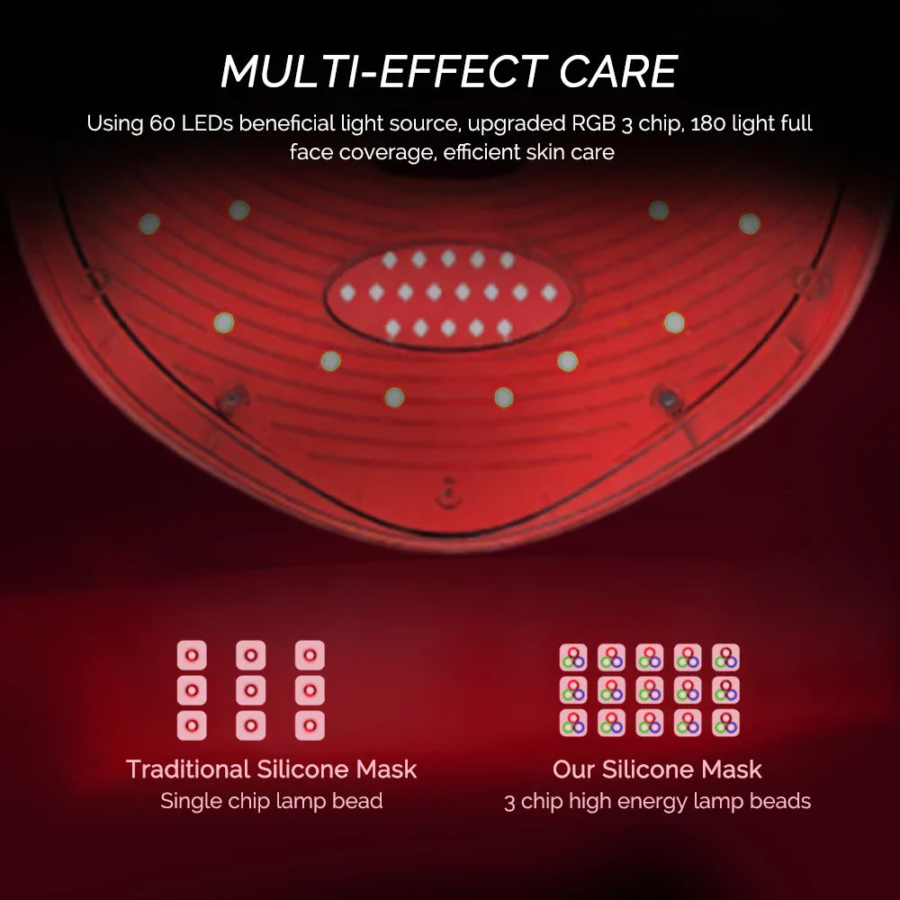 2. Multi-effect Care.Using 60LEDs beneficial light source, upgraded RGB 3 chip, 180 light full face coverage, efficient skin care. 360° full face coverage, efficient skin care, to achieve real three-dimensional care